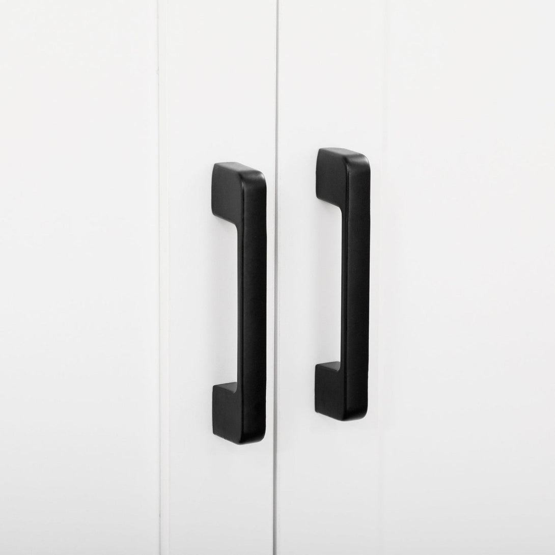 - Clean white design, with black handles for a touch of monochrome