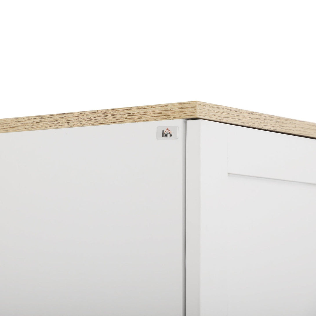 This HOMCOM tall storage cabinet is an easy and stylish way to keep your home tidy. Made from particle board for a sturdy structure, it's formed into a tall and narrow design, making it great for fitting into smaller spots. Inside there are five shelves for storage and organisation - adjustable to fit in differently-sized pieces. Four doors to access top and bottom sides easily. Complete with anti-tipping straps for safety.
