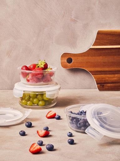 This round glass container is great for cooking, baking and storing food. It is non-porous, so it won't suffer from food staining over time, while the BPA-free makes it ideal for food storage.
