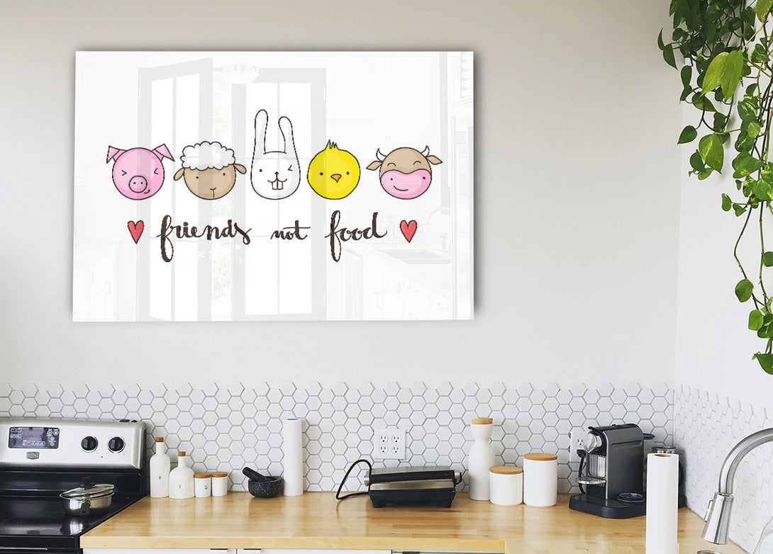Friends Not Food acrylic print, UV printed onto 5mm thick acrylic glass. Comes with everything you need to hang on your wall.