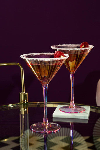 Ideal for a gin martini or gimlet, this set of two Frosted Deco martini glasses have slender stems which prevent hands form warming up the bottom.