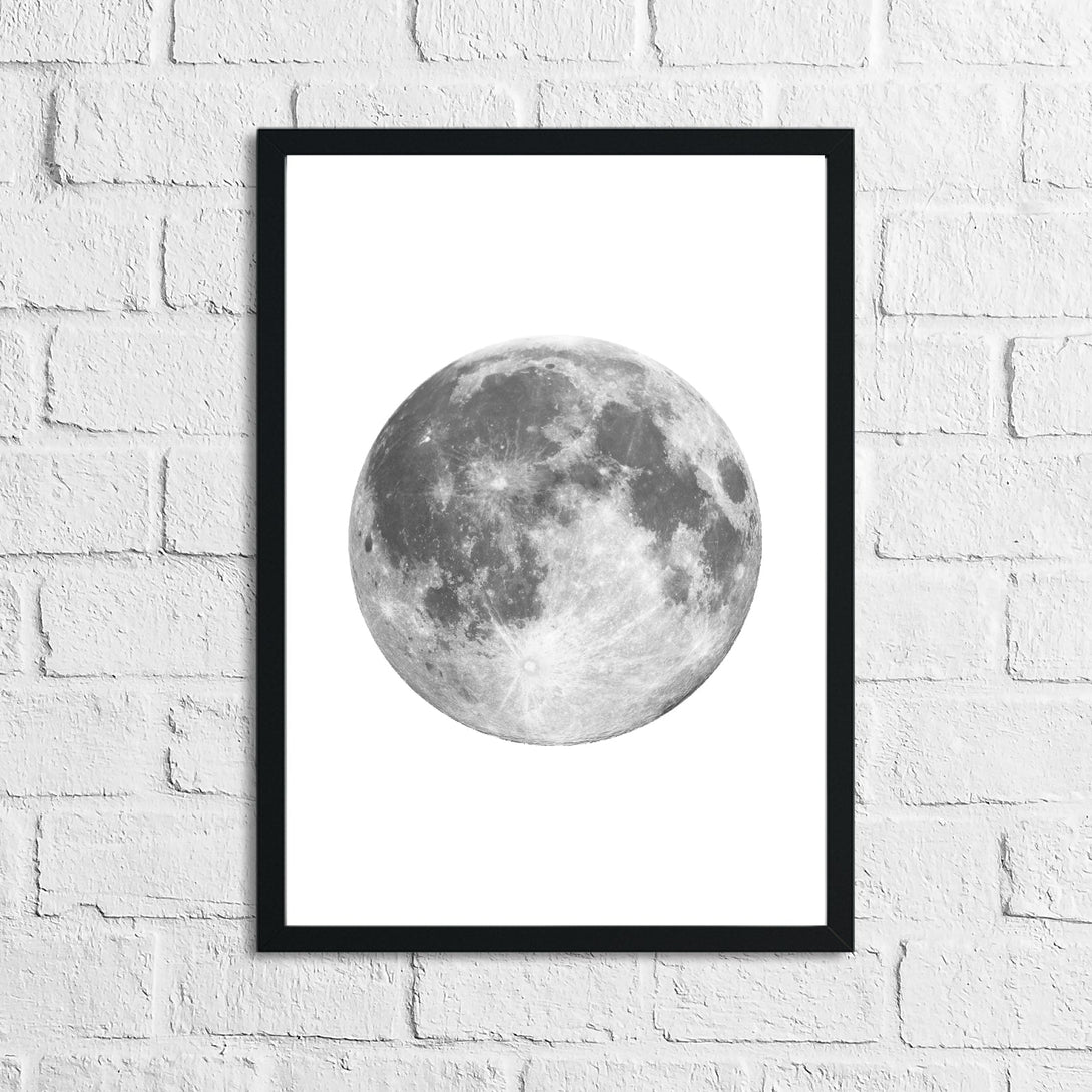 Full Moon Grey Bedroom Home Simple Decor Wall Print