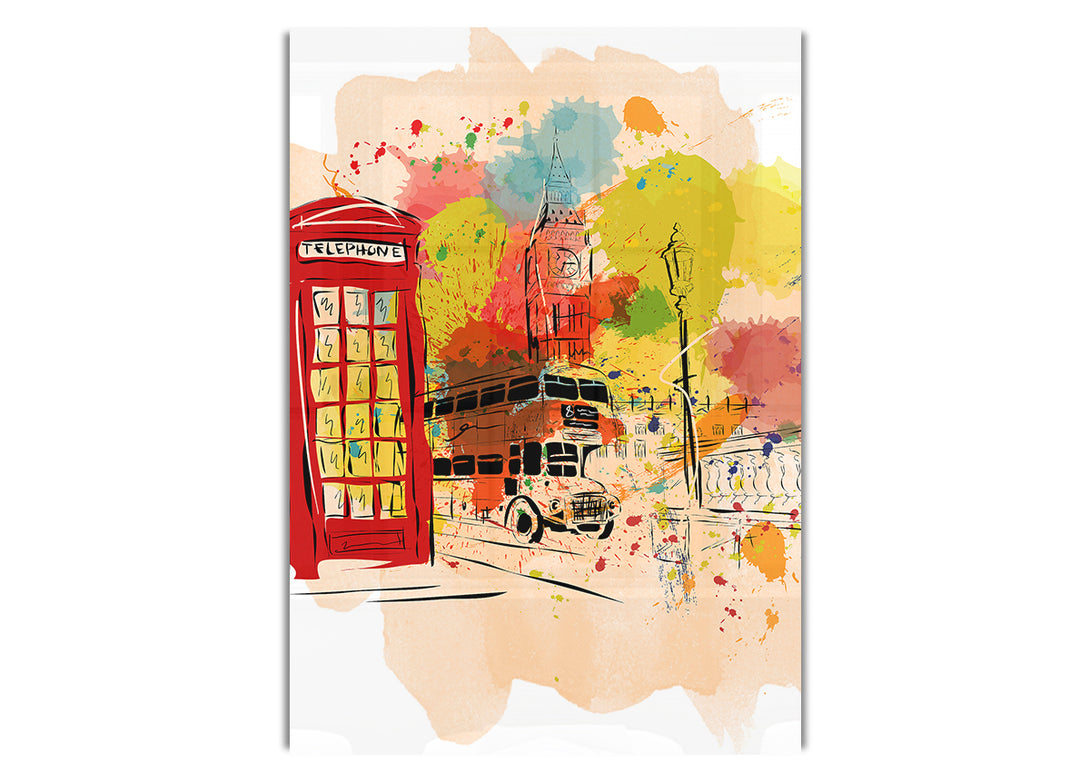 Funky Iconic City acrylic print, UV printed onto 5mm thick acrylic glass. Comes with everything you need to hang on your wall.