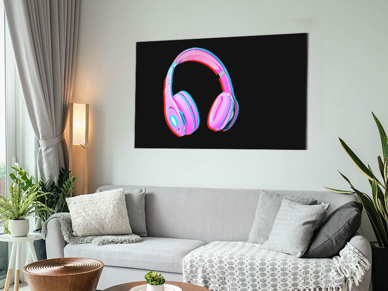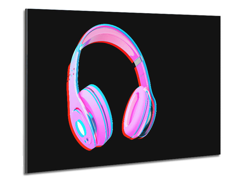 Funky Pink Headphones Printed on brushed aluminium dibond. A modern way to display art and easy to maintain.