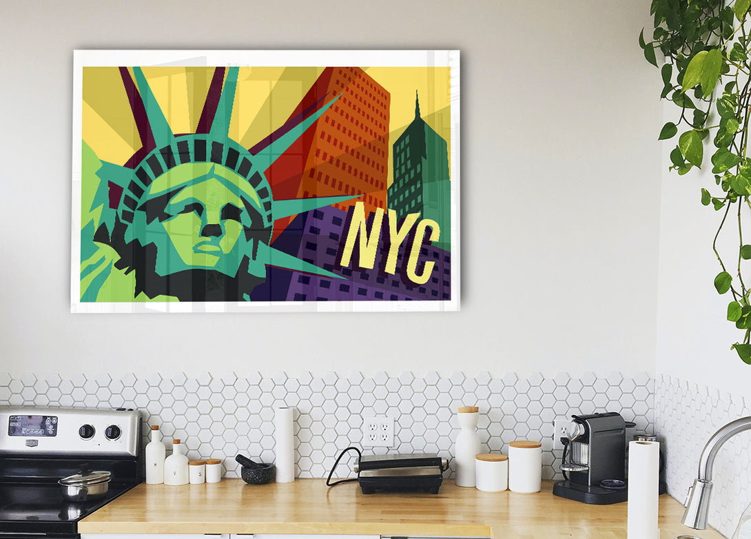 Funky Statue of Liberty acrylic print, UV printed onto 5mm thick acrylic glass. Comes with everything you need to hang on your wall.