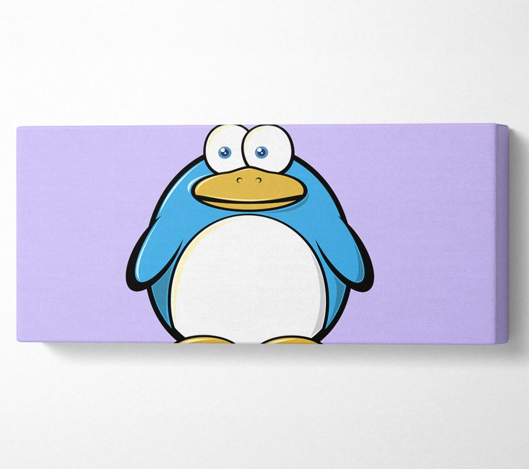 Funny Penquin Standing Lilac canvas, printed on coated polyester canvas. Mounted on to a 44mm box frame, ready to hang.