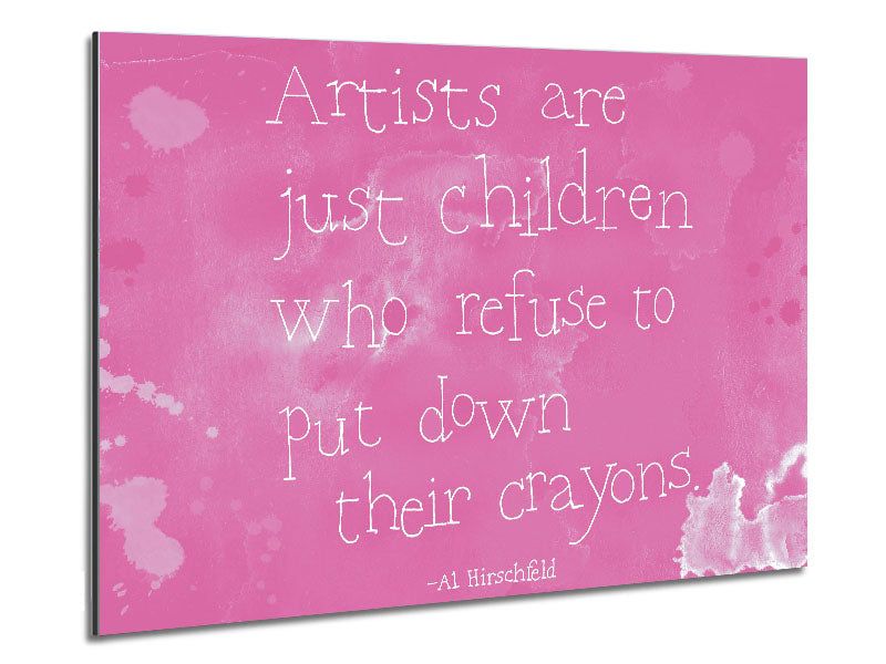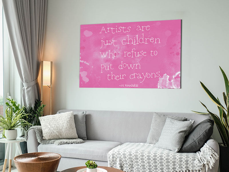 Funny Quote Hirschfeld Artists Are Just Children Pink Printed on brushed aluminium dibond. A modern way to display art and easy to maintain.