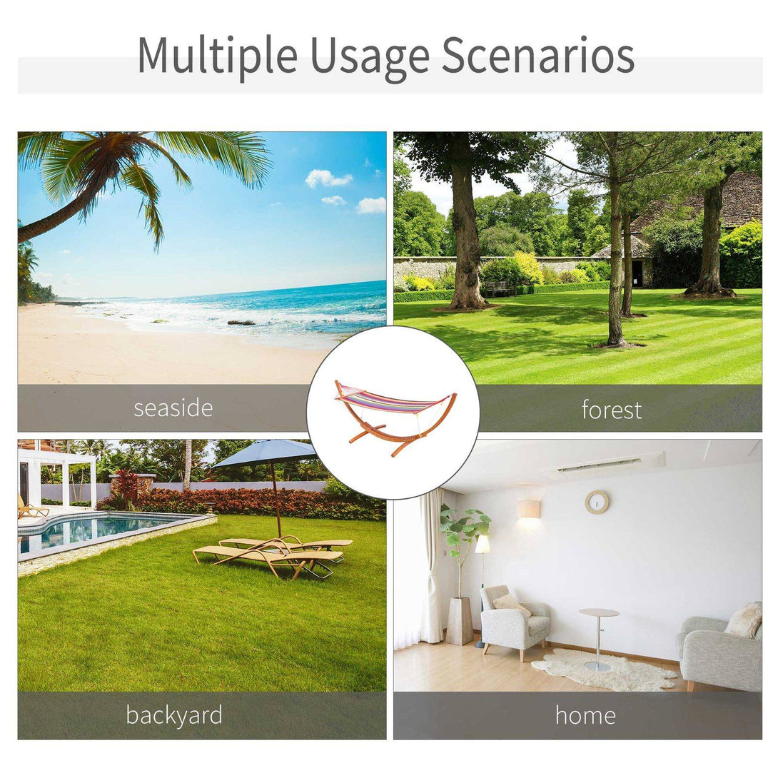 Garden Outdoor Patio Standing Frame Wooden Cotton Hammock with Arc Stand and Safe Ropes - Multi-Colour