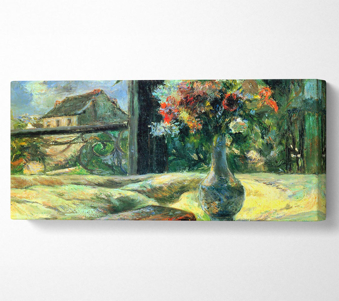 Gauguin Flower Vase In Window canvas, printed on coated polyester canvas. Mounted on to a 44mm box frame, ready to hang.