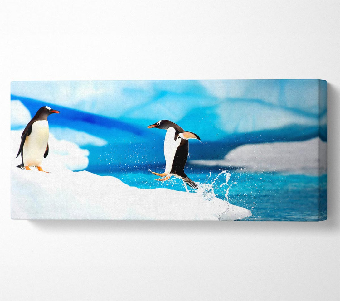 Gentoo Penguins Antarctica canvas, printed on coated polyester canvas. Mounted on to a 44mm box frame, ready to hang.