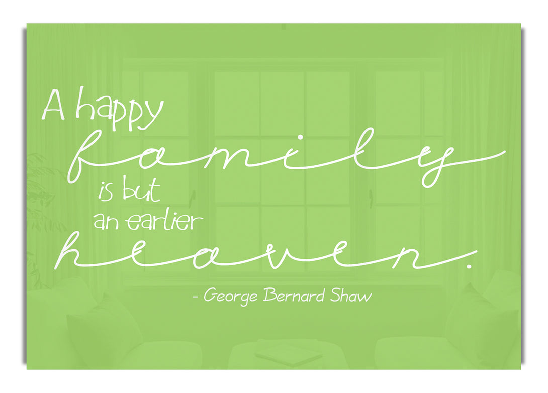 George Bernard Shaw A Happy Family Lime Green acrylic print, UV printed onto 5mm thick acrylic glass. Comes with everything you need to hang on your wall.
