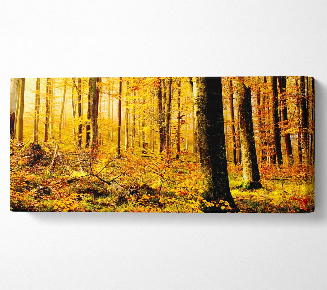 German Forest In Autumn canvas, printed on coated polyester canvas. Mounted on to a 44mm box frame, ready to hang.