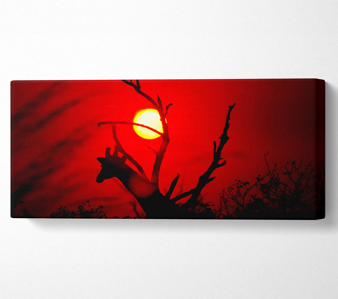 Giraffe At Sunset canvas, printed on coated polyester canvas. Mounted on to a 44mm box frame, ready to hang.