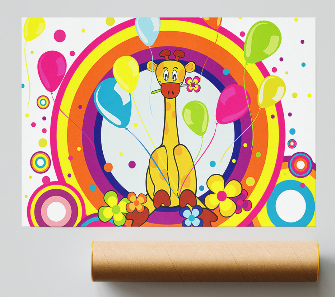 Our Giraffe Balloon Circles White Poster is printed 260 GSM premium lustre paper that offers vibrant colours and exceptional detail.