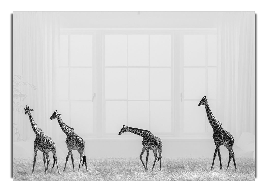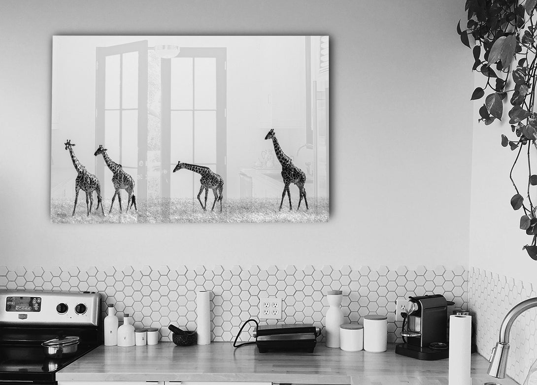 Giraffe Safari LineUp acrylic print, UV printed onto 5mm thick acrylic glass. Comes with everything you need to hang on your wall.