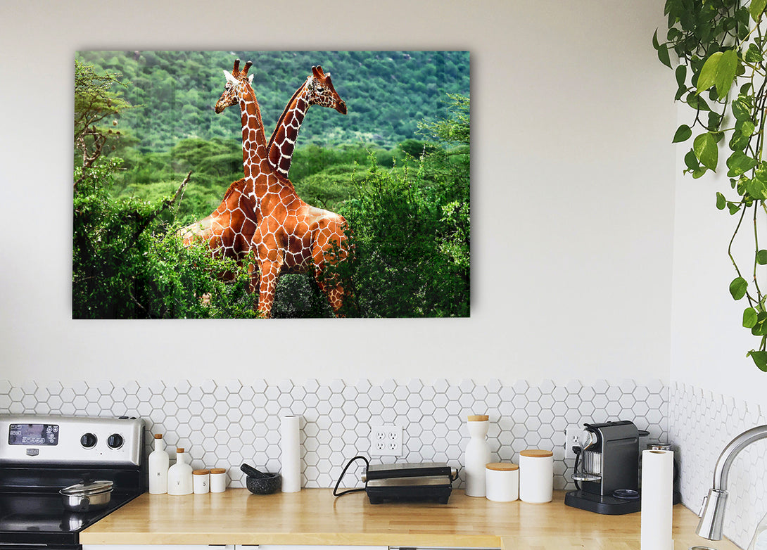 Giraffes Africa acrylic print, UV printed onto 5mm thick acrylic glass. Comes with everything you need to hang on your wall.