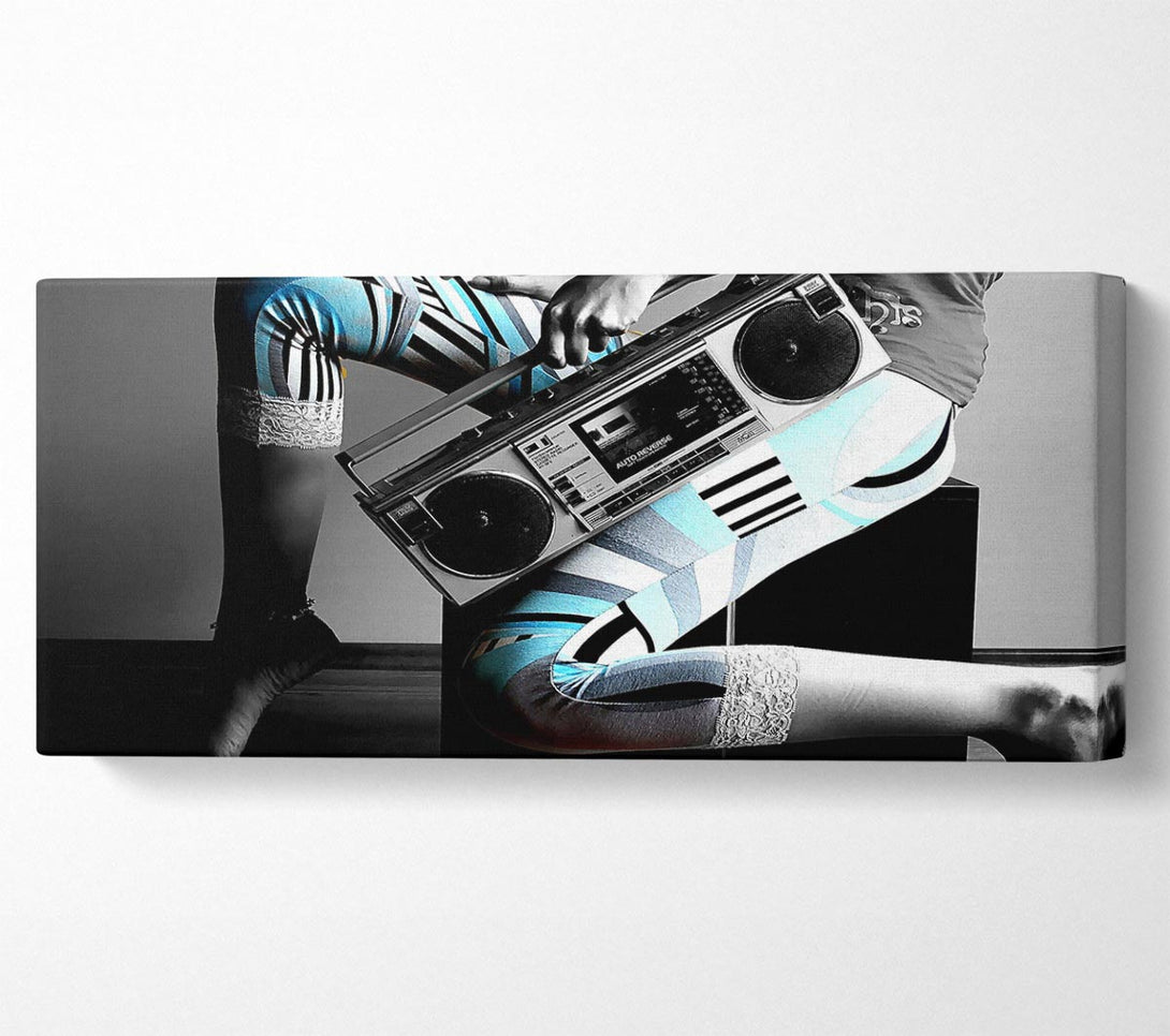 Picture of Girl And Tape Recorder Panoramic Canvas Wall Art