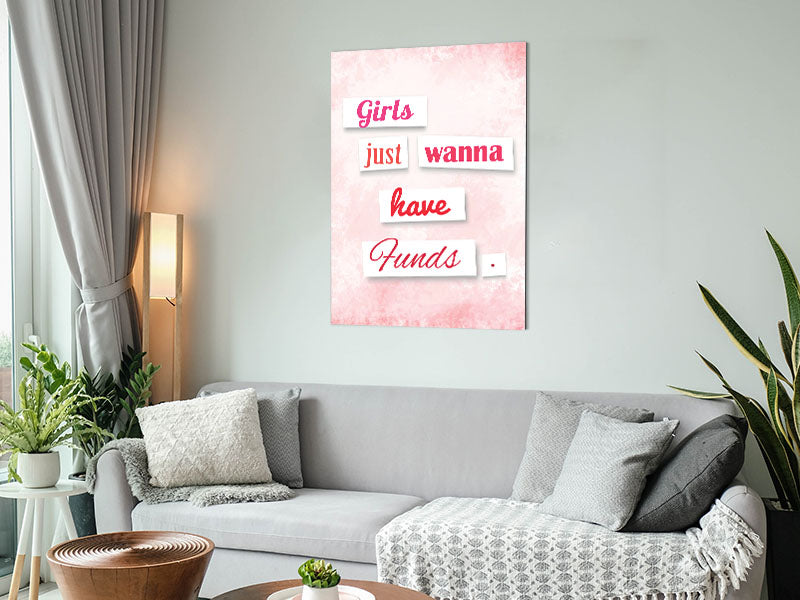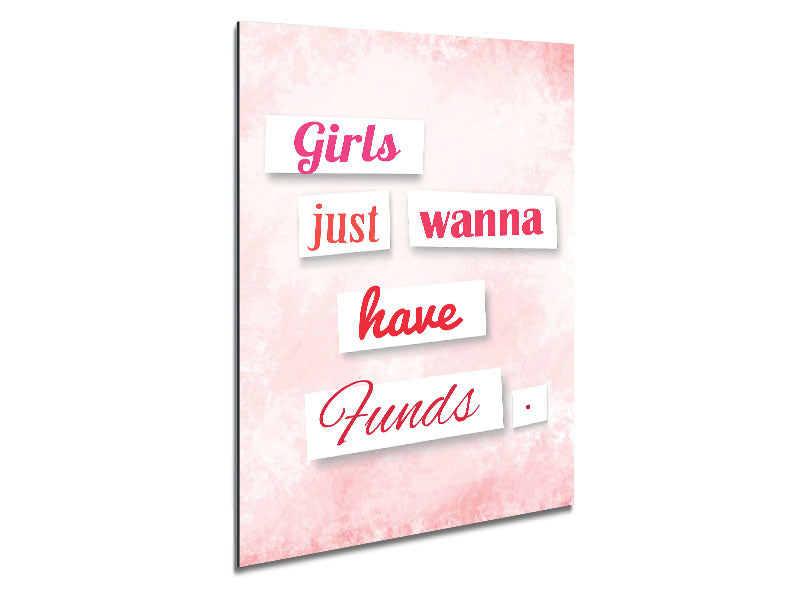 Girls Just Wanna Have Funds Printed on brushed aluminium dibond. A modern way to display art and easy to maintain.