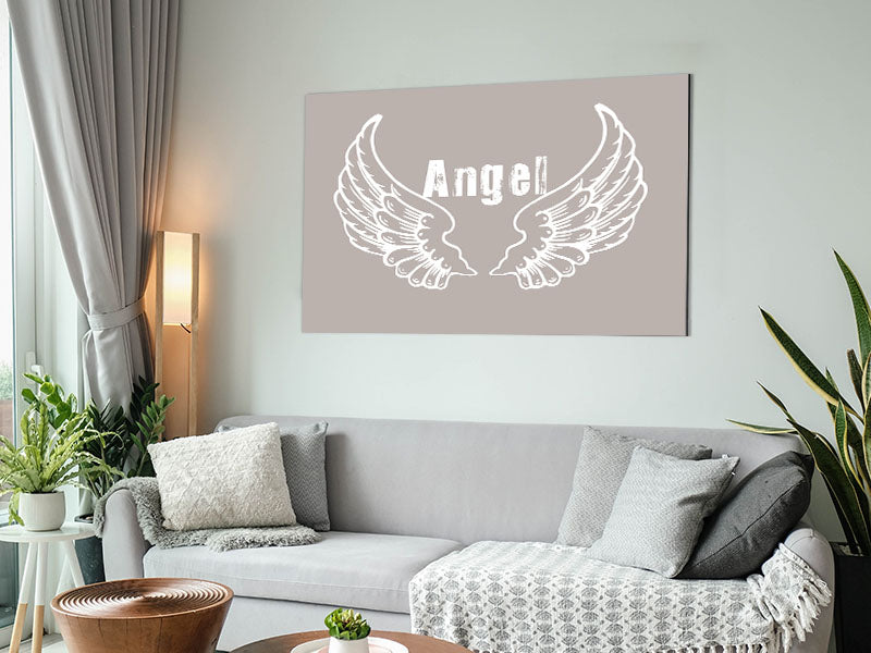 Girls Room Quote Angel Wings 2 Beige Printed on brushed aluminium dibond. A modern way to display art and easy to maintain.