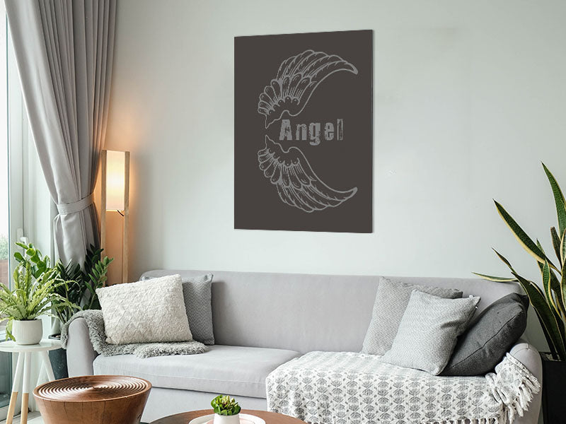 Girls Room Quote Angel Wings 3 Chocolate Printed on brushed aluminium dibond. A modern way to display art and easy to maintain.