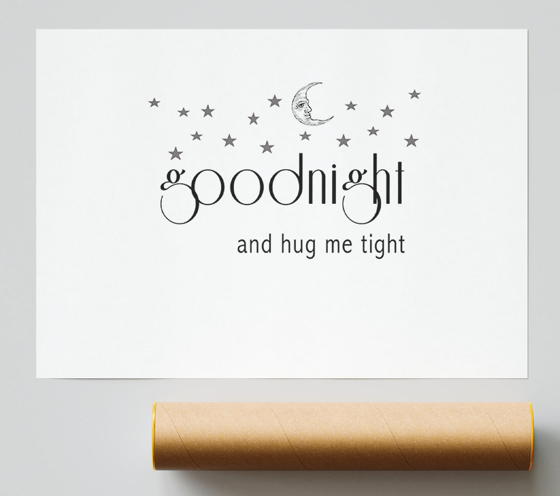 Our Girls Room Quote Good Night And Hug Me Tight White Poster is printed 260 GSM premium lustre paper that offers vibrant colours and exceptional detail.