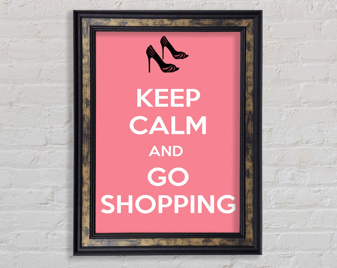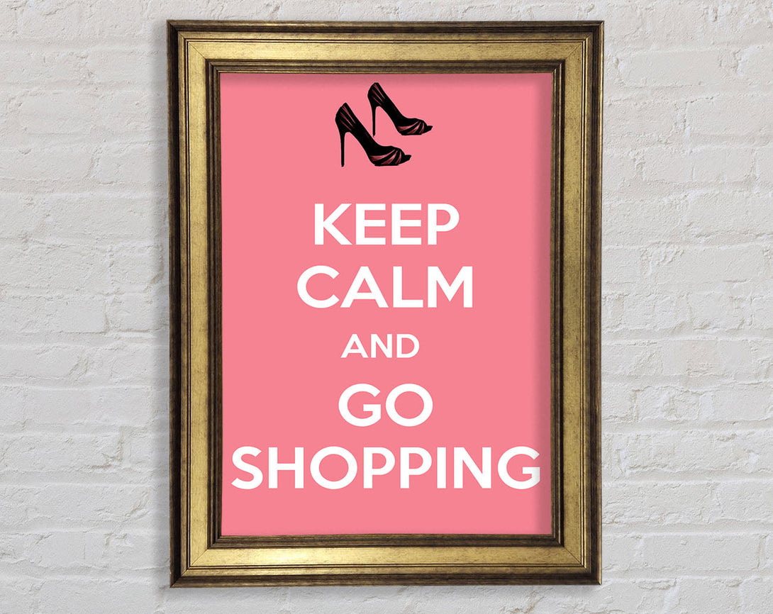 Girls Room Quote Keep Calm And Go Shopping Pink Framed Print