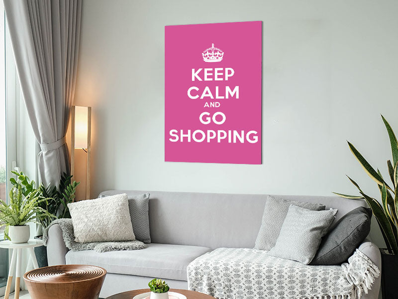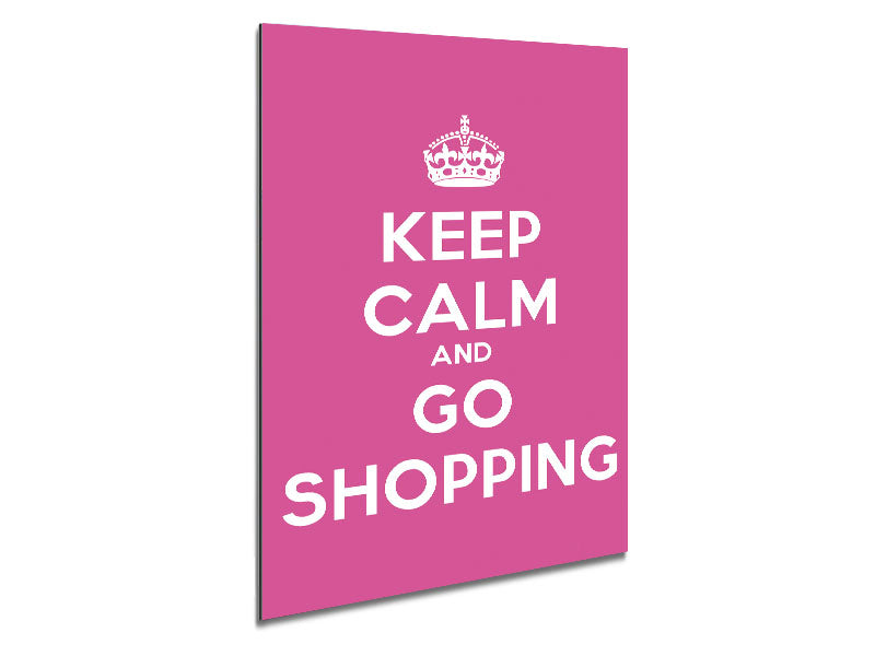 Girls Room Quote Keep Calm Go Shopping Printed on brushed aluminium dibond. A modern way to display art and easy to maintain.
