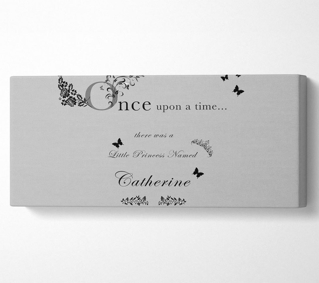 Girls Room Quote Once Upon A Time Your Name Grey canvas, printed on coated polyester canvas. Mounted on to a 44mm box frame, ready to hang.