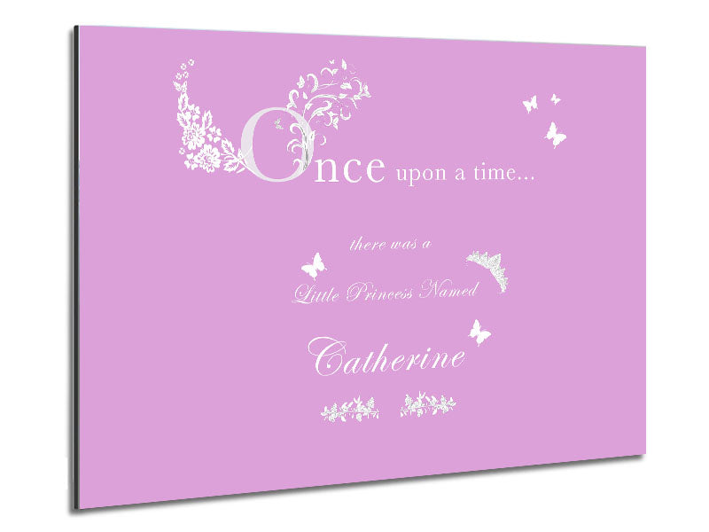 Girls Room Quote Once Upon A Time Your Name Pink Printed on brushed aluminium dibond. A modern way to display art and easy to maintain.