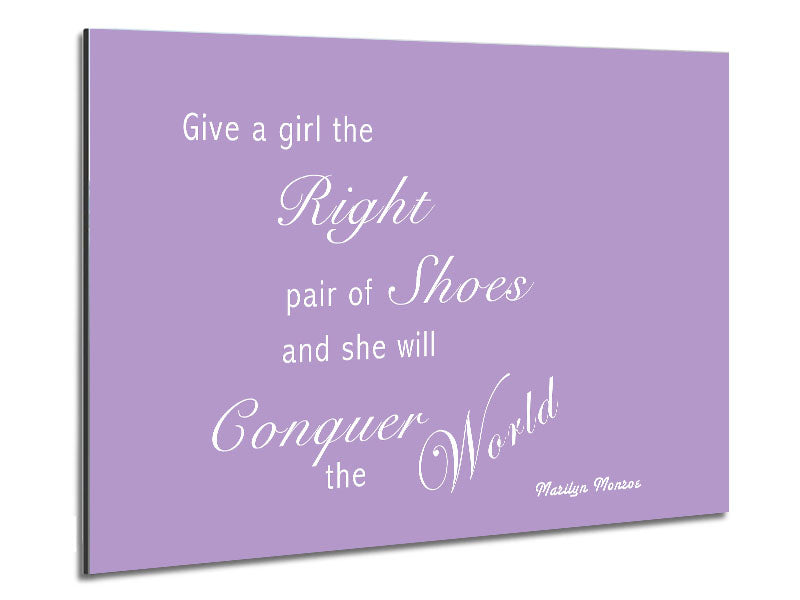 Girls Room Quote The Right Pair Of Shoes Marilyn Monroe Lilac Printed on brushed aluminium dibond. A modern way to display art and easy to maintain.