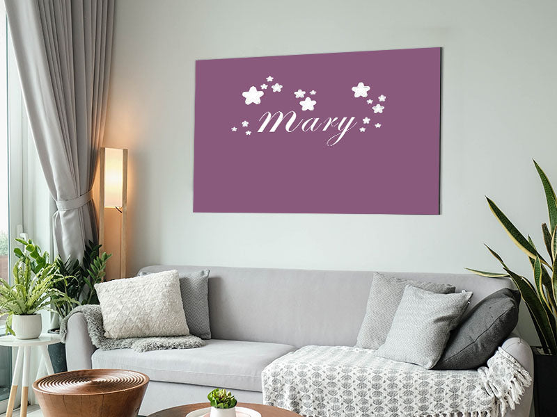 Girls Room Quote Your Name In Stars Dusty Pink Printed on brushed aluminium dibond. A modern way to display art and easy to maintain.