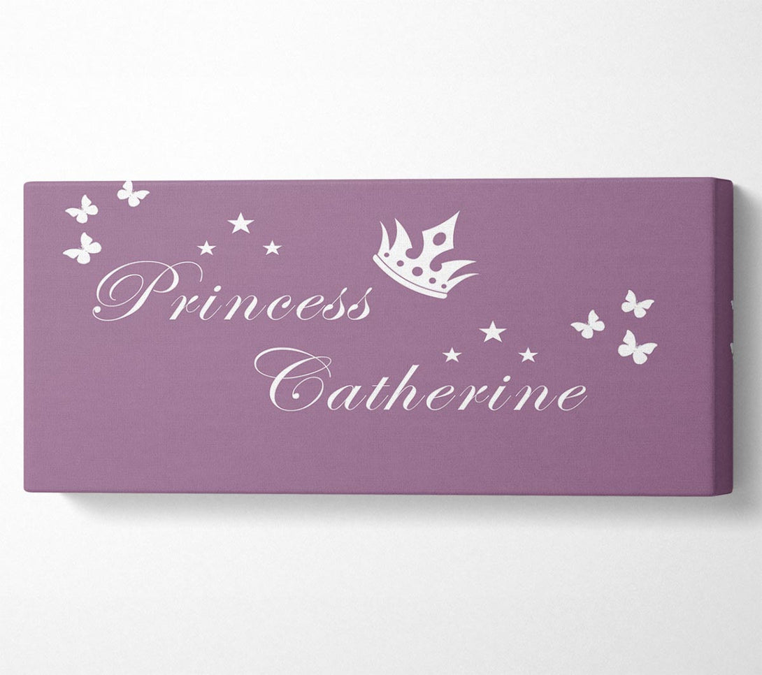 Girls Room Quote Your Own Name Princess 2 Dusty Pink canvas, printed on coated polyester canvas. Mounted on to a 44mm box frame, ready to hang.