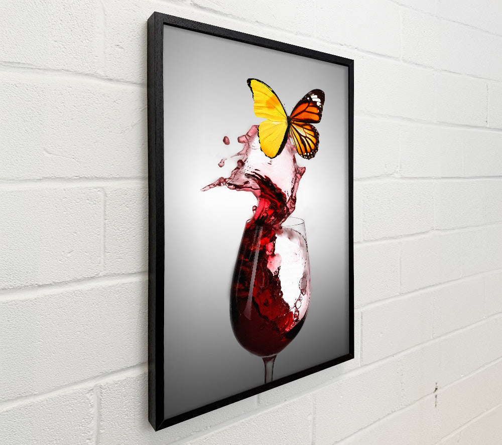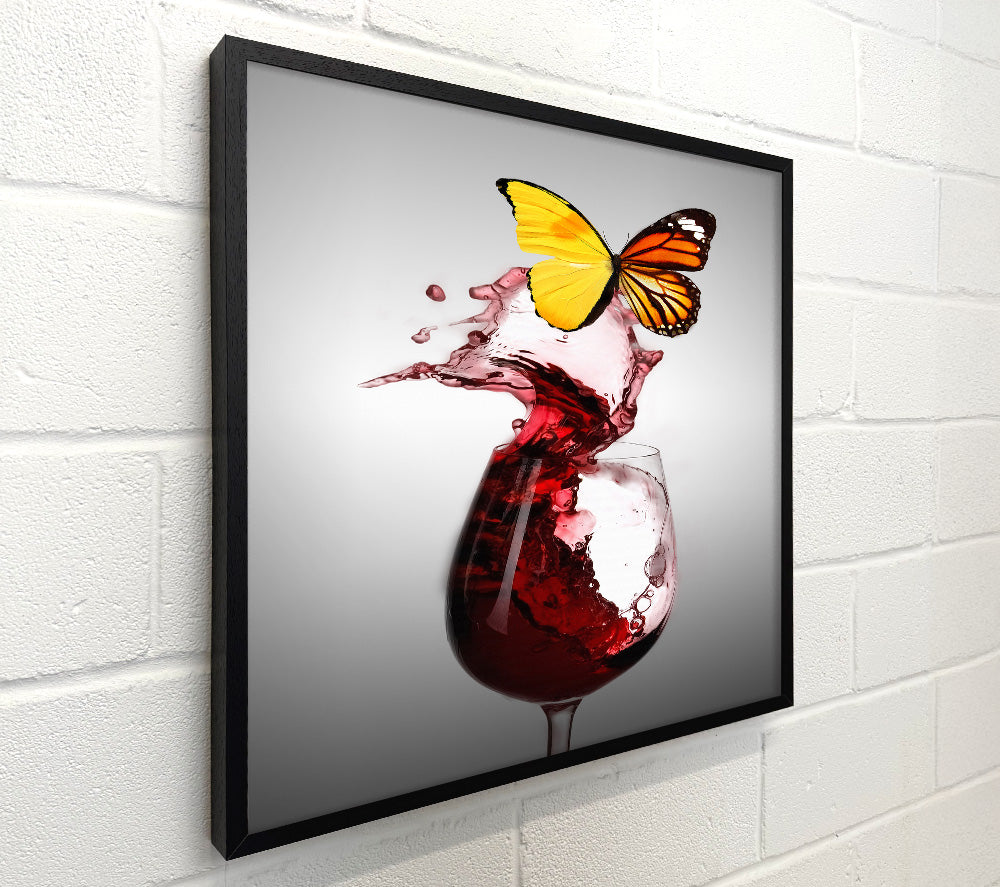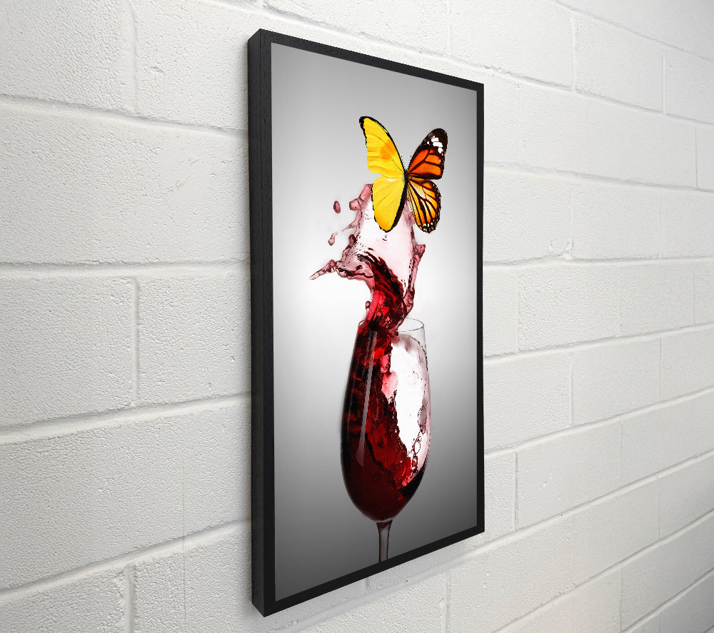Glass Of Red Wine Yellow Butterfly