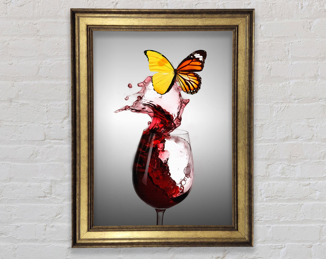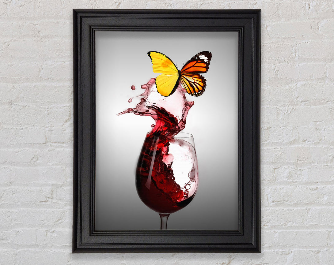 Glass Of Red Wine Yellow Butterfly Framed Print