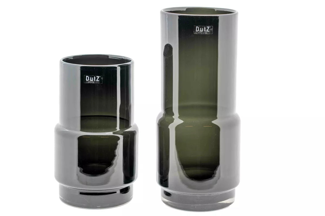 FENN VASE: The Fenn vase has a refined cylindrical shape that is both elegant and balanced. Its proportions are carefully crafted, with straight, even sides that taper slightly towards the base, creating a calm yet visually interesting look. The thick and heavy mouth blown glass enhances its form with subtle, organic curves, adding depth and character. Its minimalist design makes it versatile for various arrangements, while the smooth surface and clean lines emphasize simplicity and sophistication.