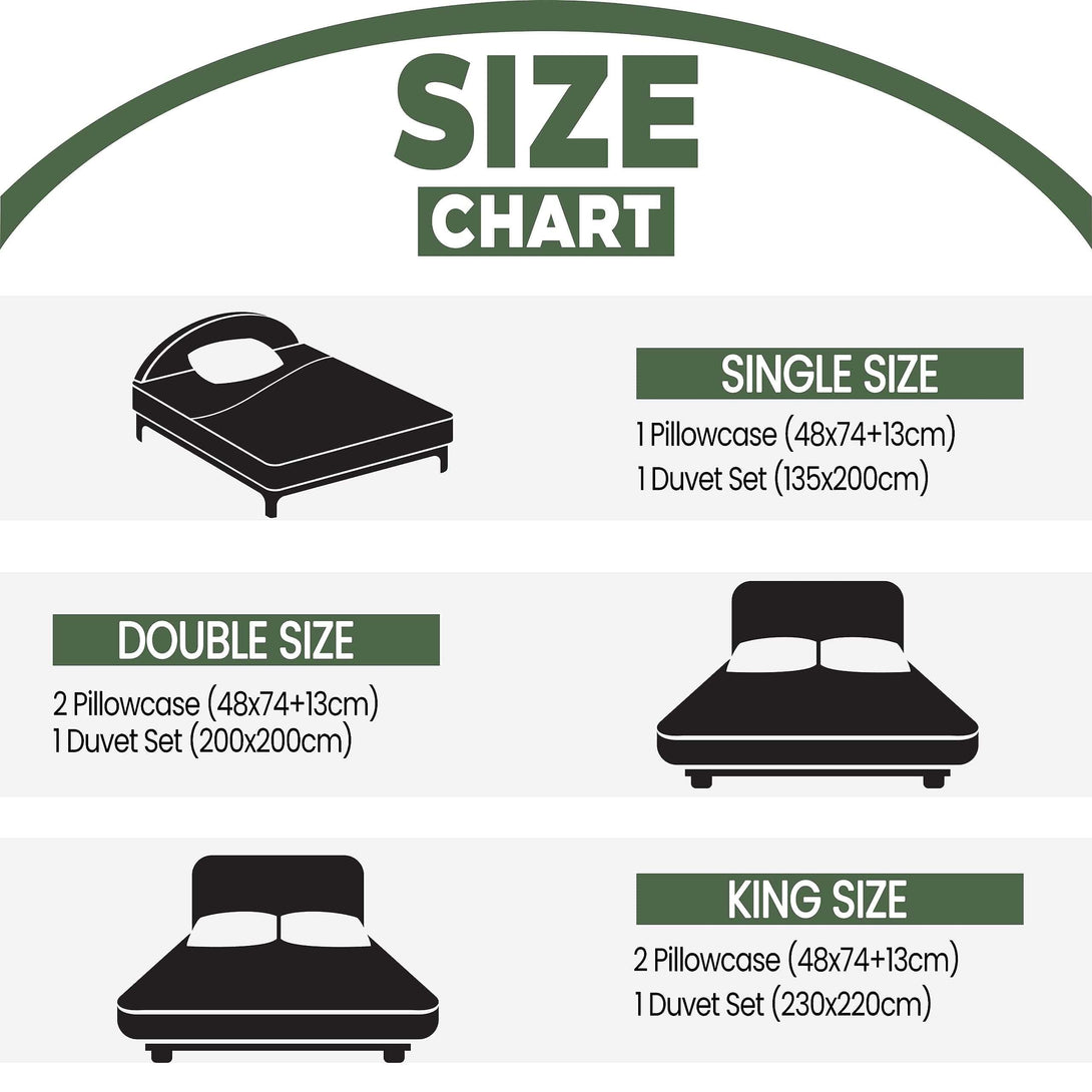 • King Duvet Cover Set (230 x 220 cm) + 2 Pillowcases (50 x 75 cm)