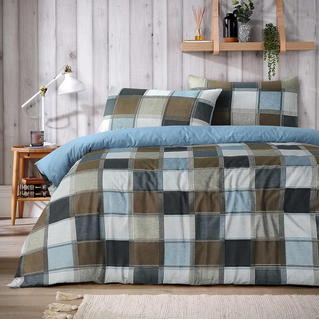 Glencoe Reversible Check Duvet Cover Set with Pillowcases Classic Polycotton Bedding Available in Single Double King Sizes by OLIVIA ROCCO