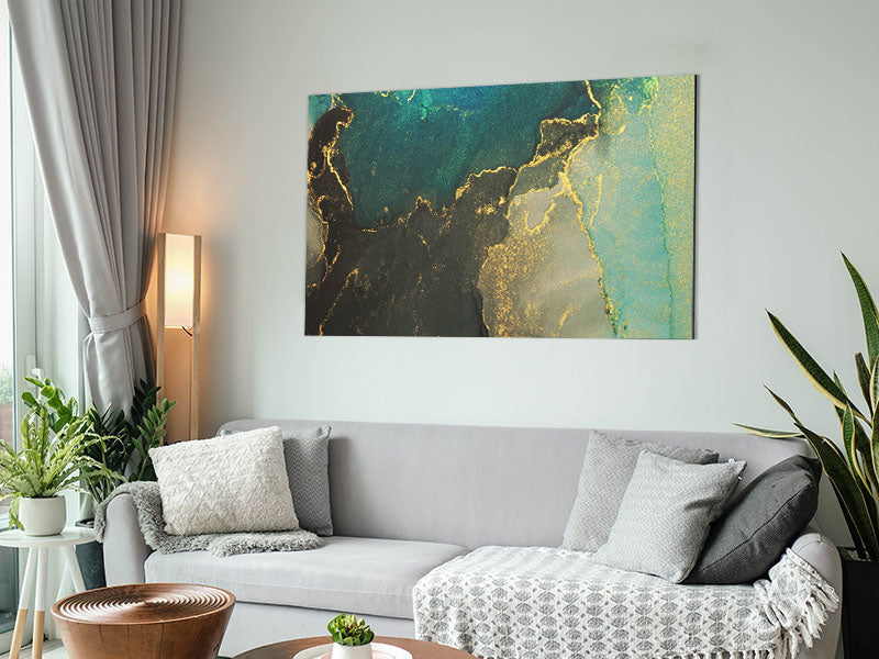 Glitter Shimmer Teal Printed on brushed aluminium dibond. A modern way to display art and easy to maintain.