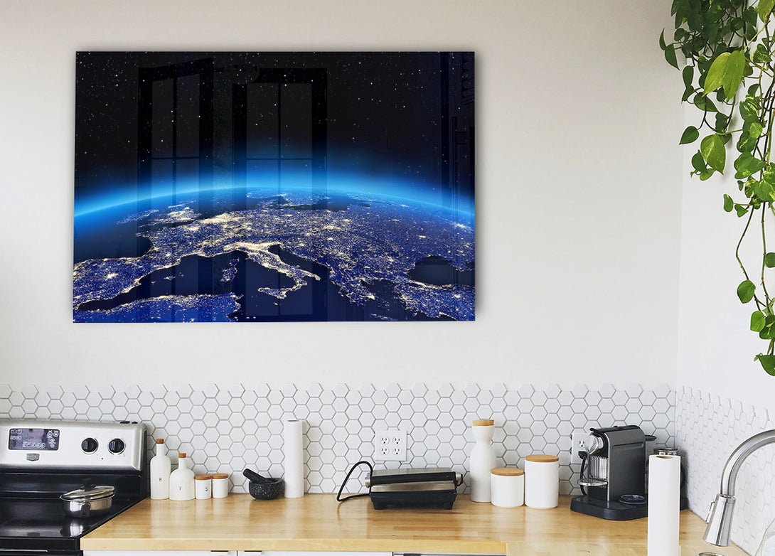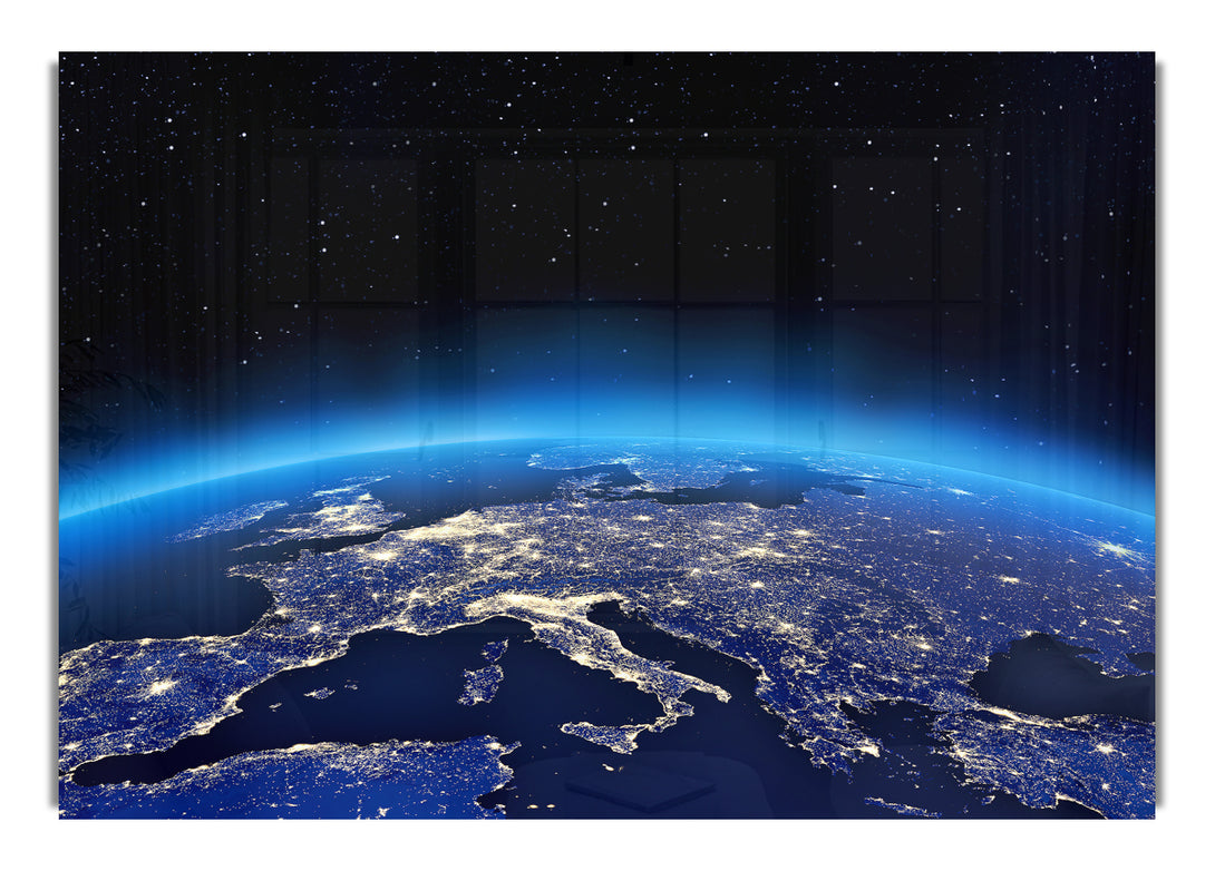 Glow Of The Earth At Night acrylic print, UV printed onto 5mm thick acrylic glass. Comes with everything you need to hang on your wall.