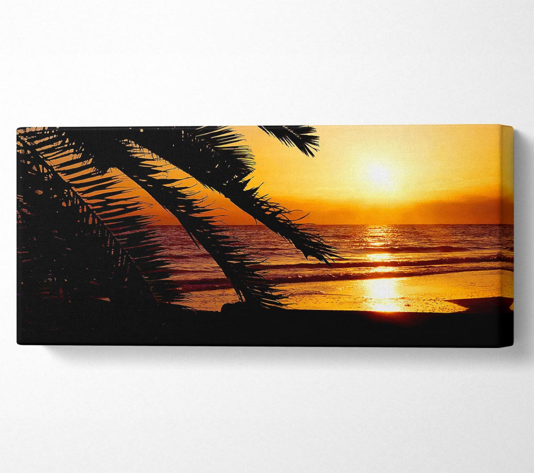 Glow Of The Golden Ocean canvas, printed on coated polyester canvas. Mounted on to a 44mm box frame, ready to hang.