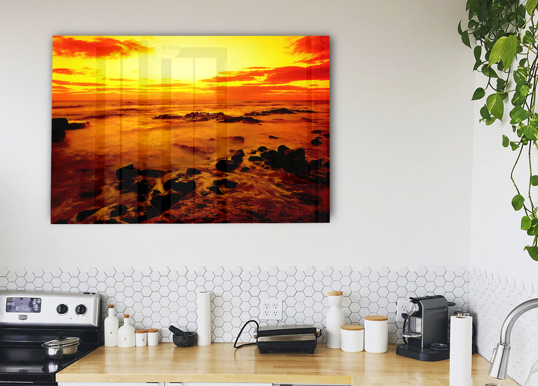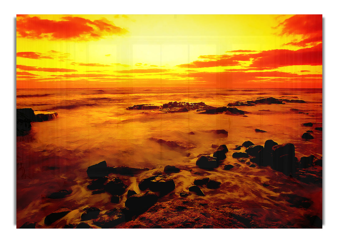 Glowing Ocean Sun acrylic print, UV printed onto 5mm thick acrylic glass. Comes with everything you need to hang on your wall.