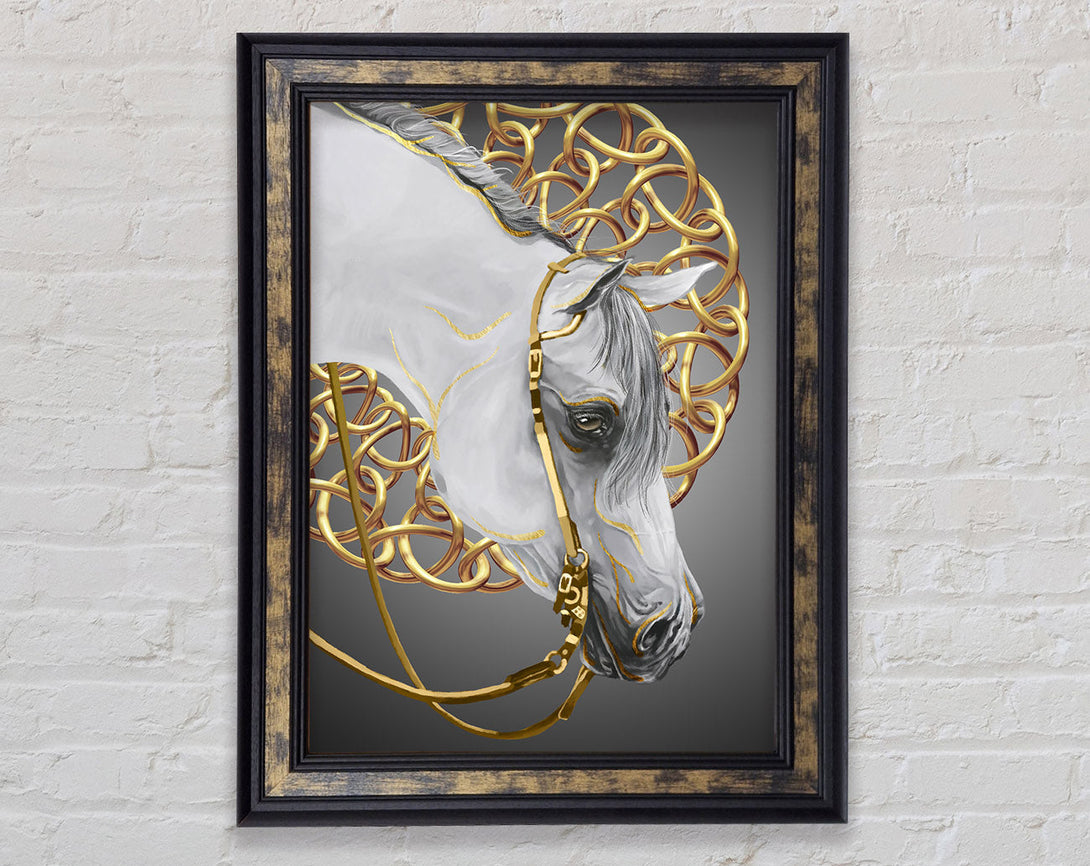 Gold Chains On Walnut Horse Framed Print
