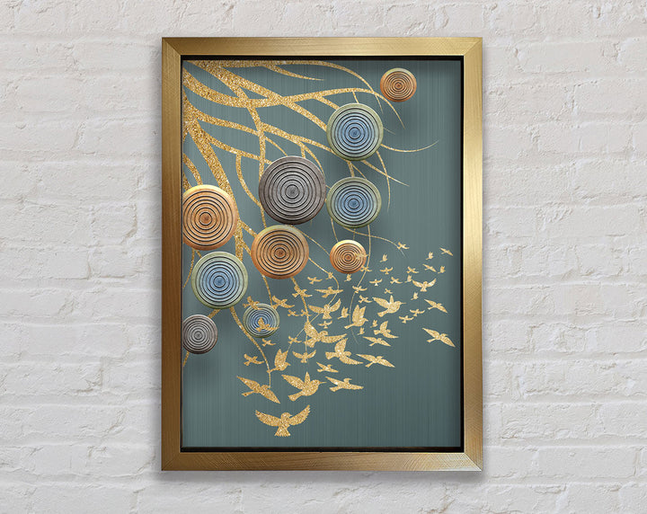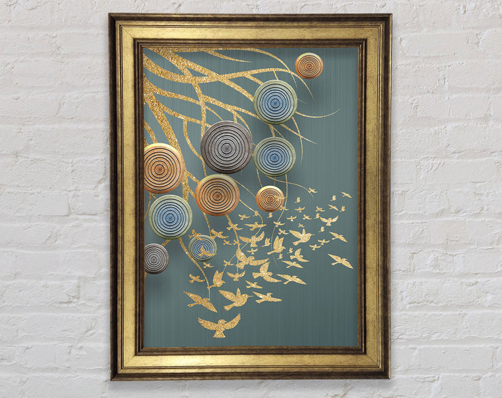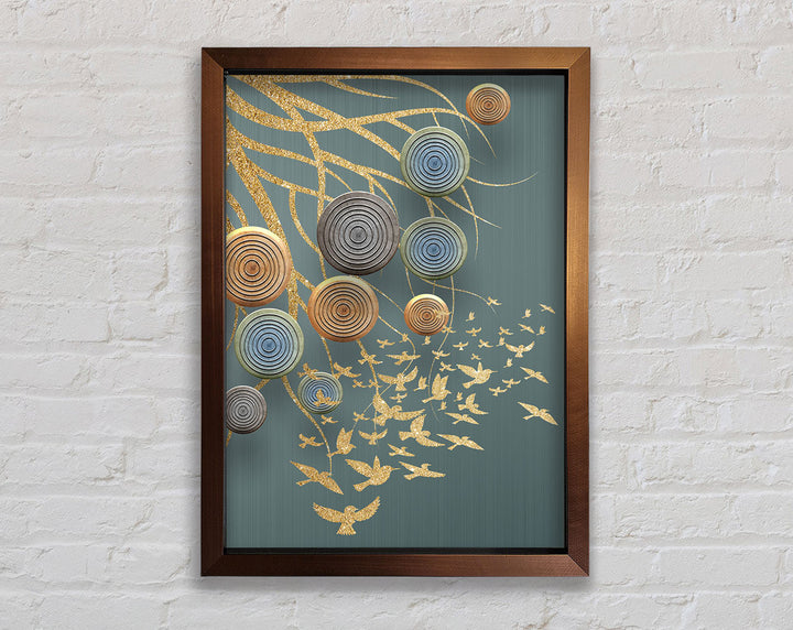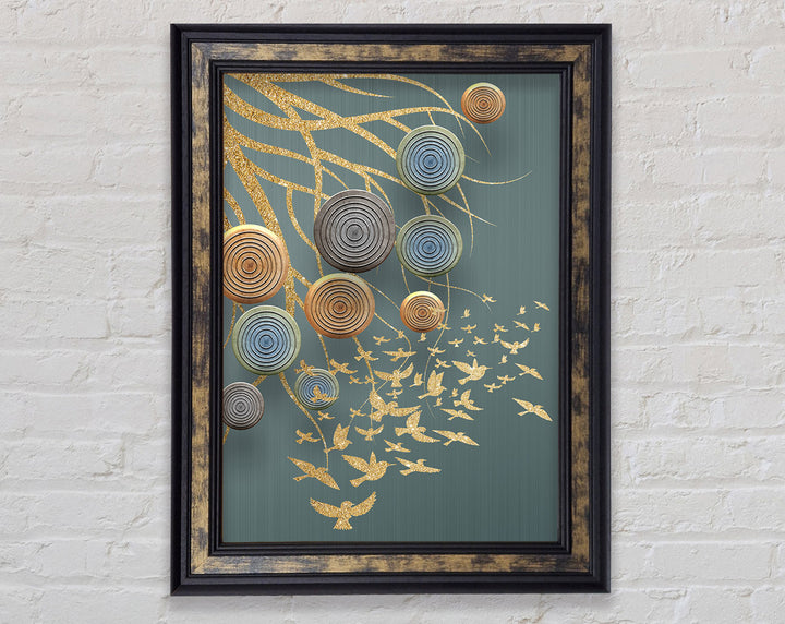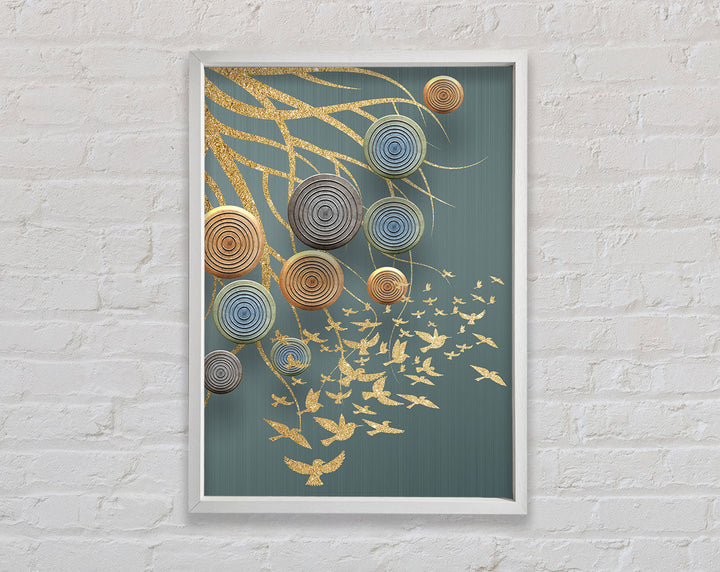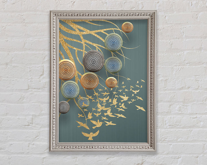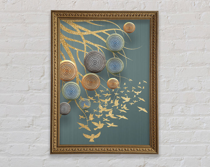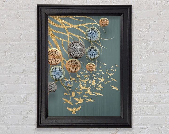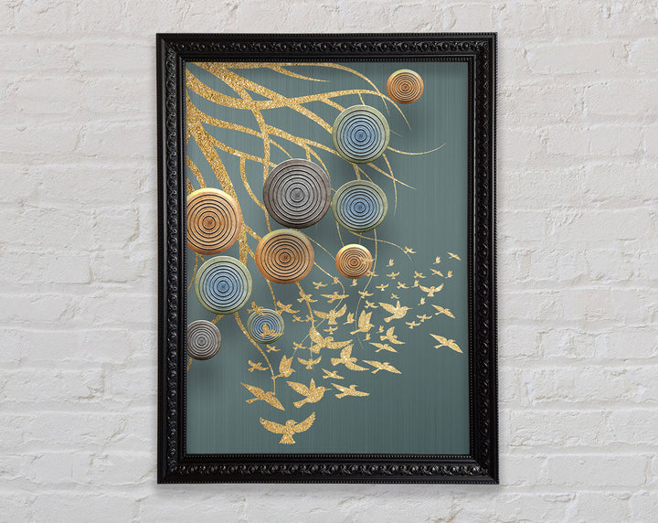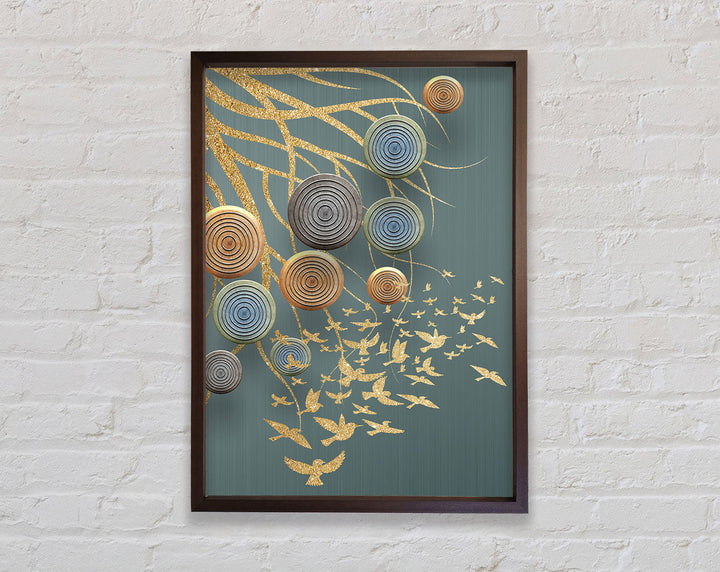 Enhance your home with the stunning Gold Flying Birds With Circles Framed Print, a piece of framed art that exudes elegance and charm. This artwork features graceful gold birds in flight, intertwined with delicate circles, creating a captivating visual. Available in six sizes, from small to oversized, this print can fit any space perfectly. Choose from a variety of colors to match your décor seamlessly. Each piece is handmade in the United Kingdom, ensuring high-quality craftsmanship. Ready to hang right out of the box, this framed art brings beauty and sophistication to any room, making it a perfect addition to your home.