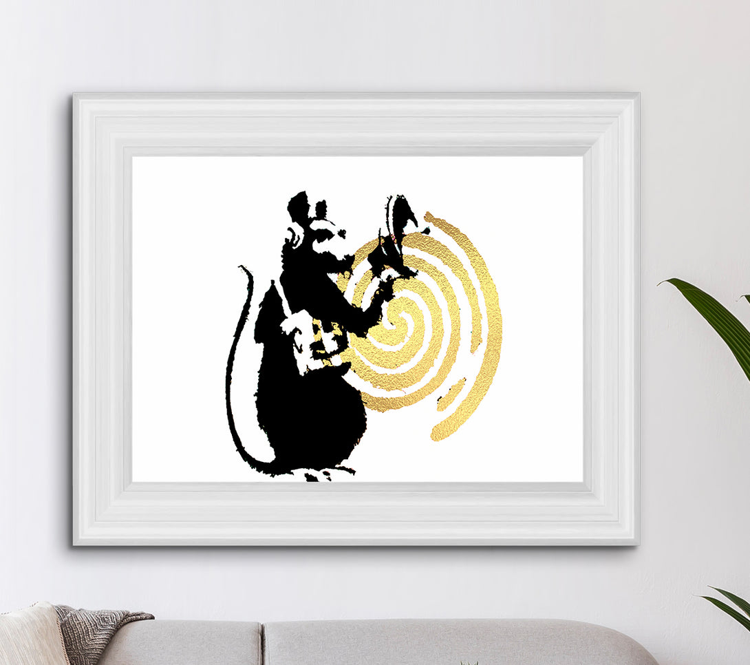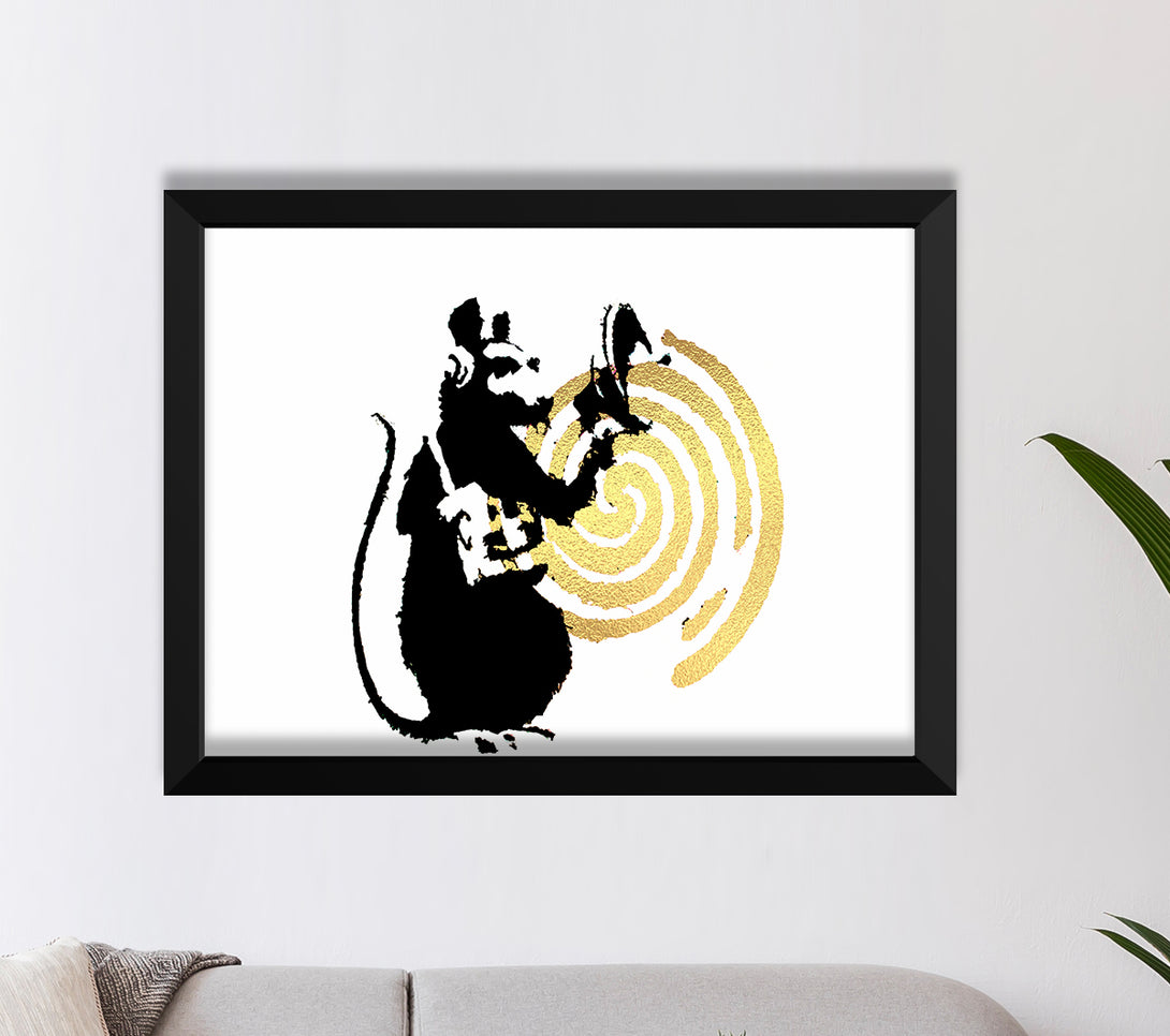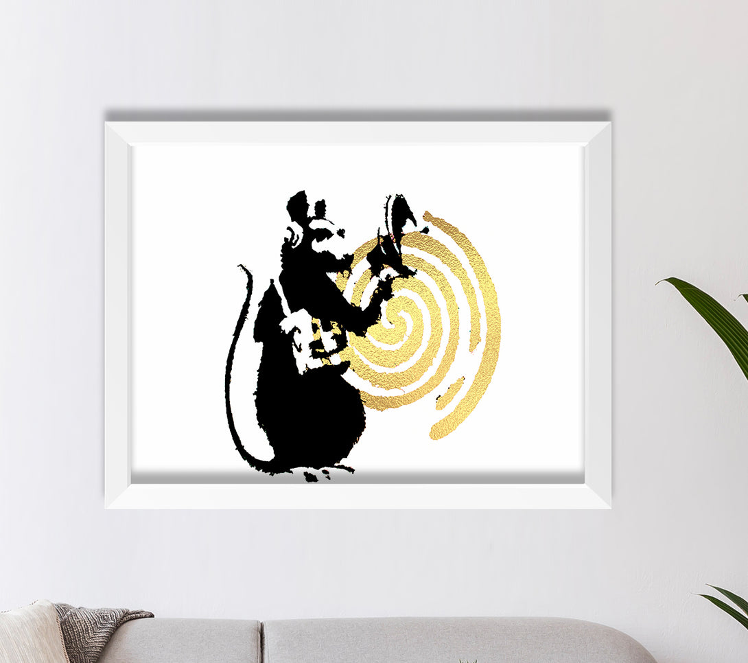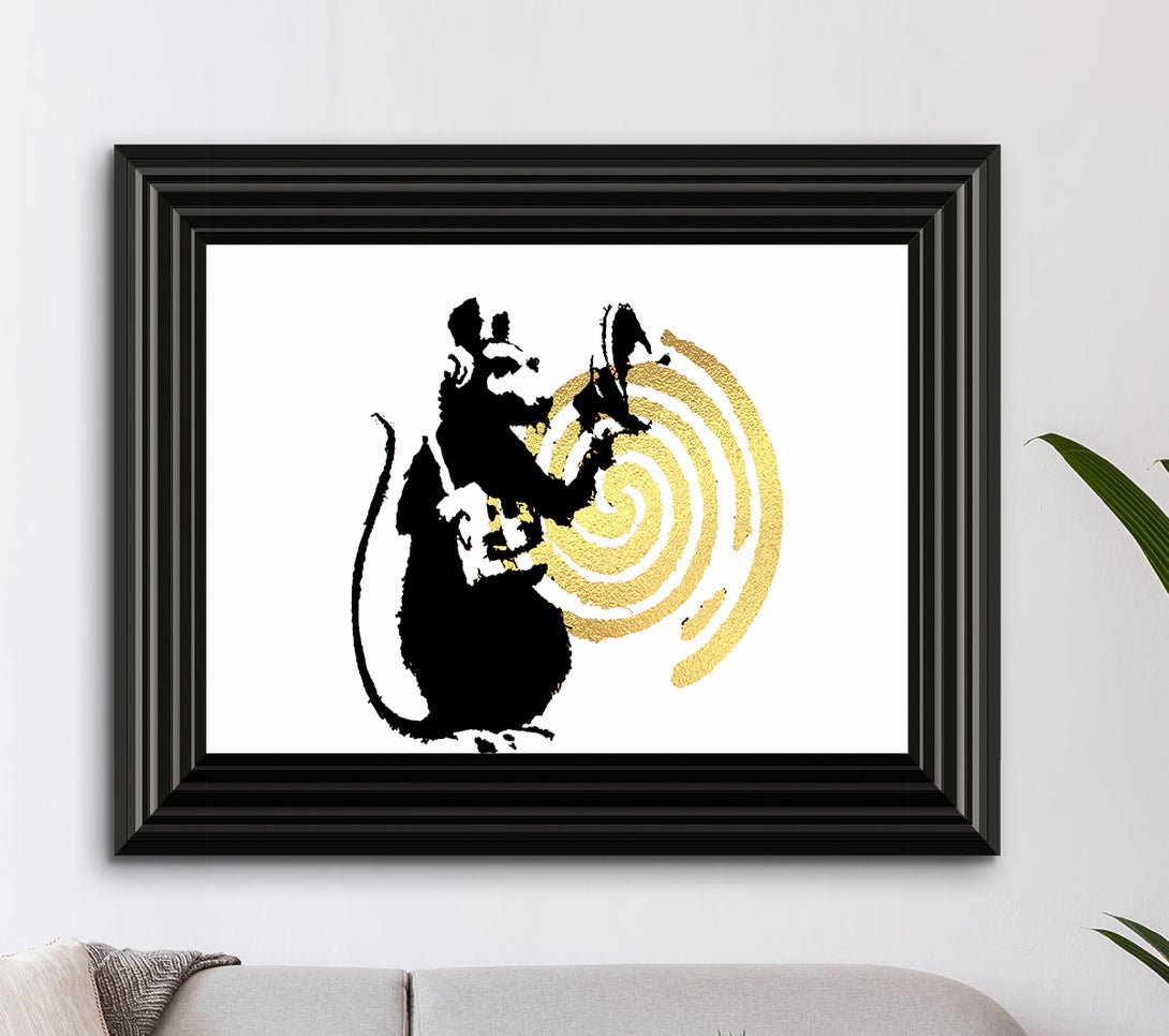 This Radar Rat Banksy Gold Foil Print is a unique piece of art that will make an impressive statement in any room. Crafted from real gold-foil, this beautiful print celebrates the iconic rat imagery of Banksy with the perfect level of detail and sheen. Add this sophisticated piece to your home and add a touch of luxury to your décor.