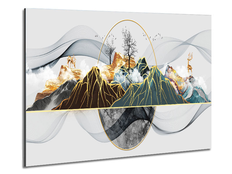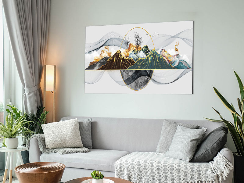 Gold Line Mountain Printed on brushed aluminium dibond. A modern way to display art and easy to maintain.