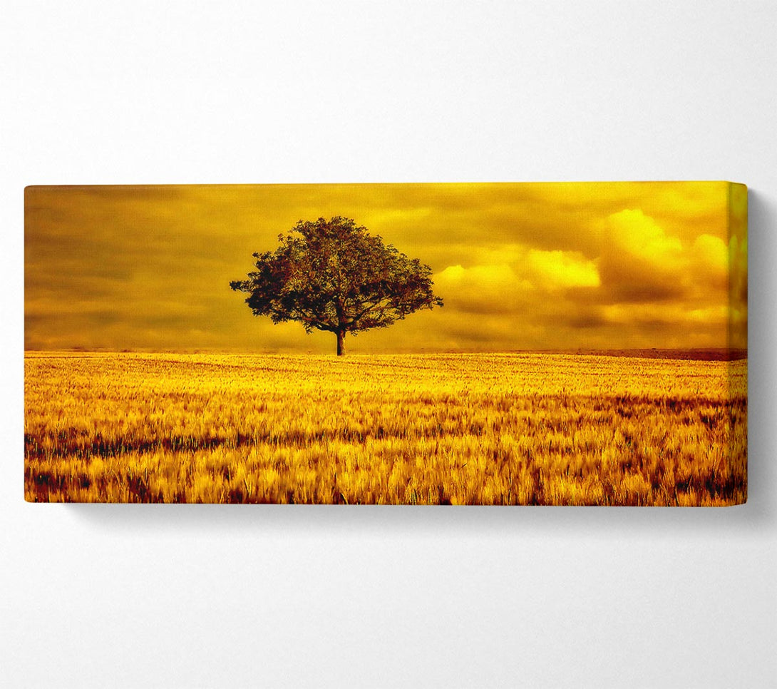 Gold canvas, printed on coated polyester canvas. Mounted on to a 44mm box frame, ready to hang.