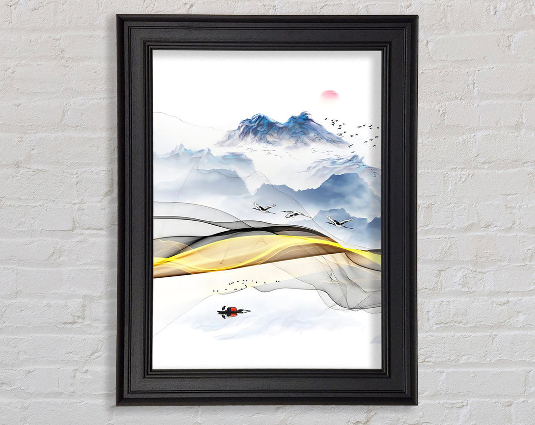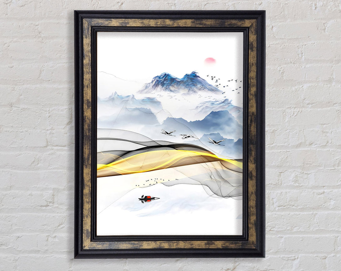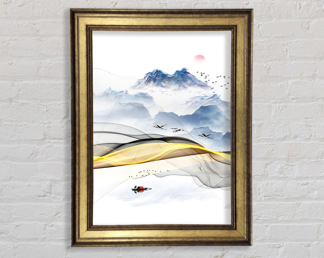 Gold Swirl Boat On Lake Abstract Framed Print