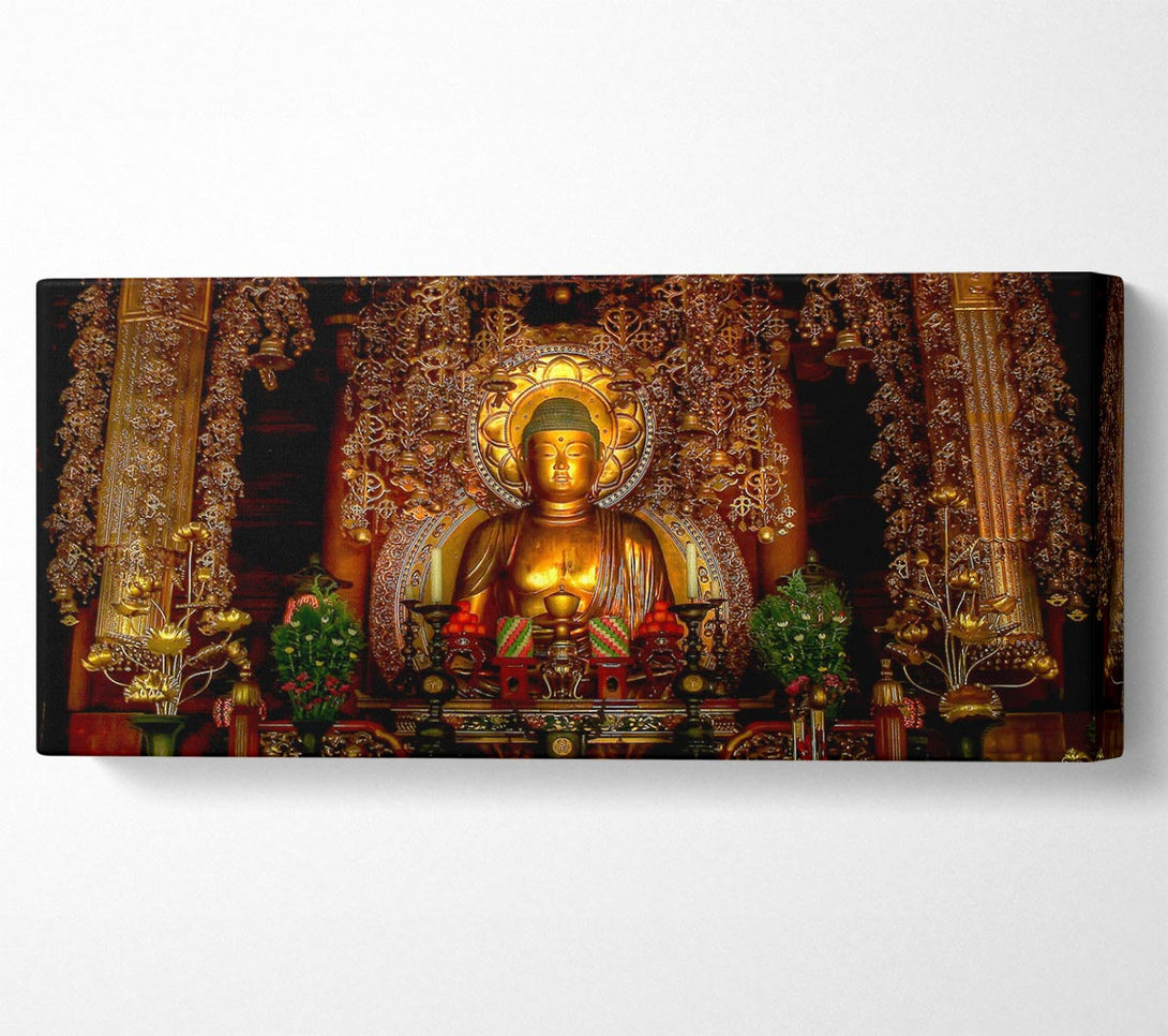 Golden Buddha Chion Japan canvas, printed on coated polyester canvas. Mounted on to a 44mm box frame, ready to hang.