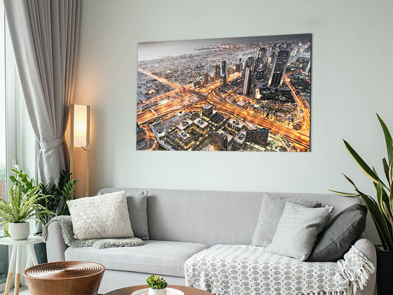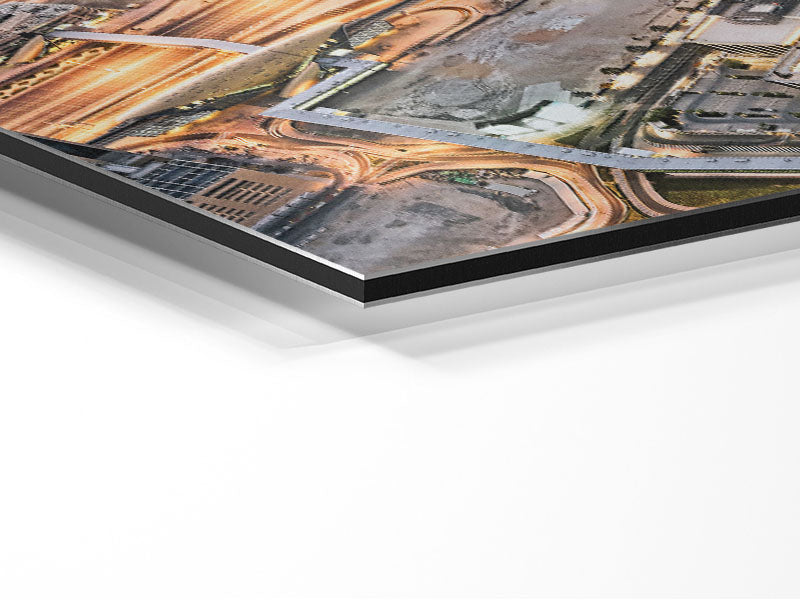 Golden City Roads Printed on brushed aluminium dibond. A modern way to display art and easy to maintain.