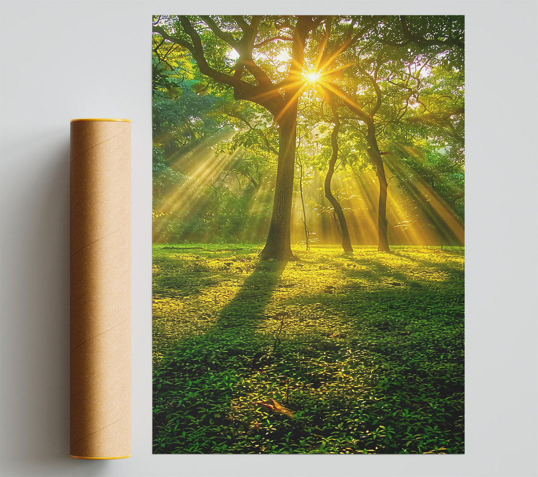 Golden Forest Sunrays Poster